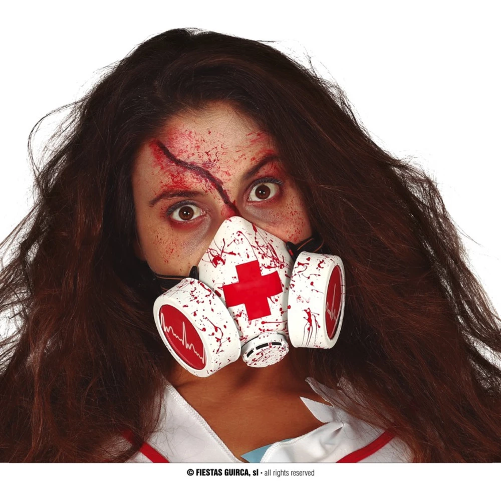 This Bloody Gas Mask is the perfect addition to any Halloween Costume, adding that extra effect to make people go wow. You can easily add this to your Zombie Nurse or Doctor costume. The Mask is white with a red nurse cross in the middle, splatted with blood.