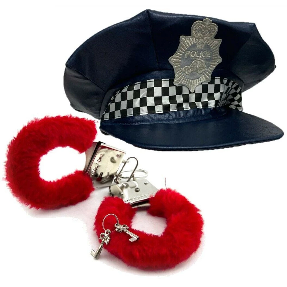 - Contains: 1x Blue Police Hat, 1x Red Fluffy Handcuffs