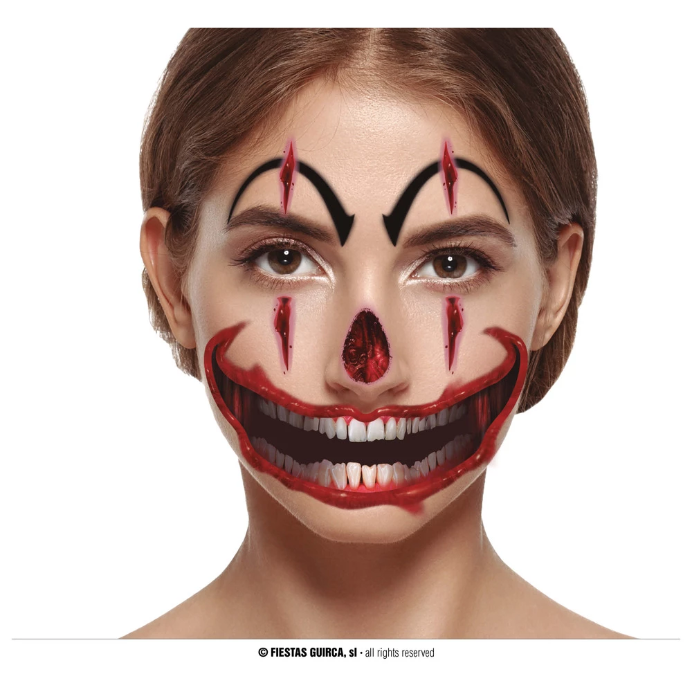 This clown face tattoo is the perfect accessory to complete your clown fancy dress costume. Simple yet affective the face tattoo is instantly recognisable and will help bring your character to life. Fake tattoos allow you to change your appearance without all the fuss of makeup and smudging. These bright tattoos pair really well with our clown costume’s.