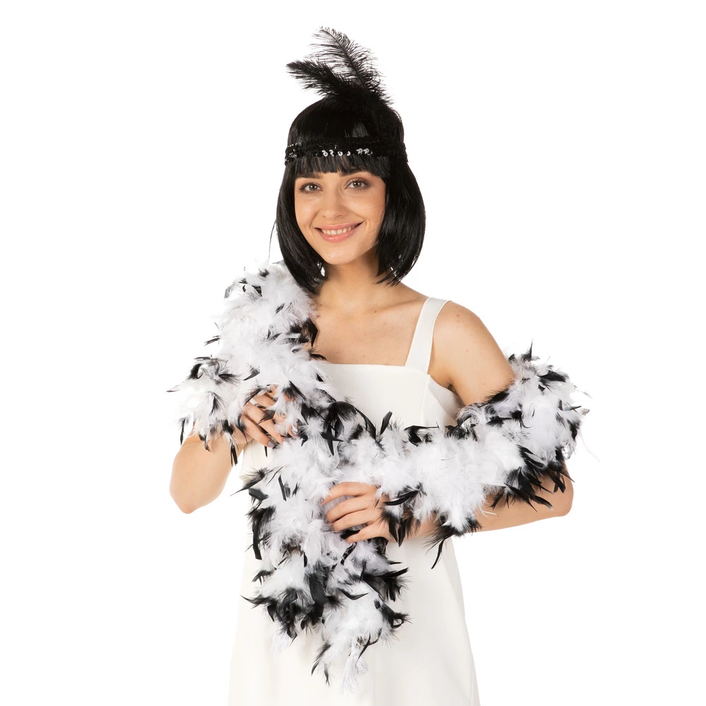 Are you struggling to put together your 1920s flapper look, well this beautiful Black and White feather boa will Flaunt your flamboyant side at the party. The elegant 1920s style accessory is a great touch of class to add to your costume.