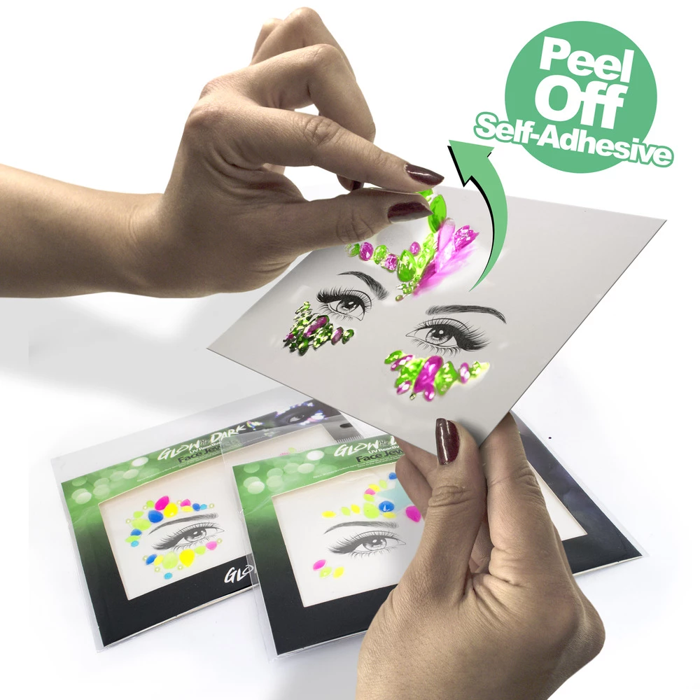 Add some Jewels to your glowing festival & party looks with the PaintGlow Glow in the Dark Face Jewels. The florescent gems will instantly add some colour to any makeup look.