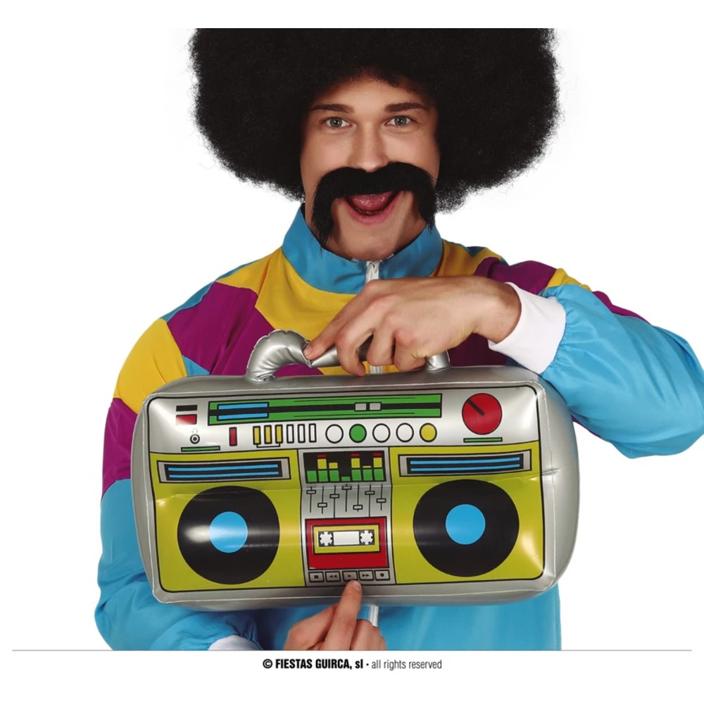 Become the Ultimate DJ with this inflatable radio! Perfect for the groovy 80s or a funny photo booth shoot this radio will provide all the laughs all night long!