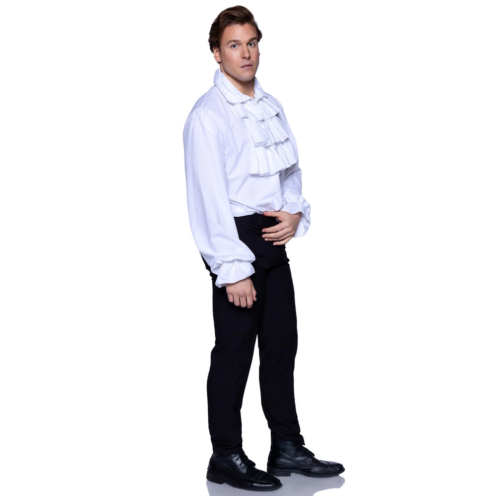 This Ruffle front shirt is the perfect base for your fancy dress costume, use for costumes such as pirates, steampunk, vampires and so much more. The simple t-shirt can be paired with plain trousers to complete the look.