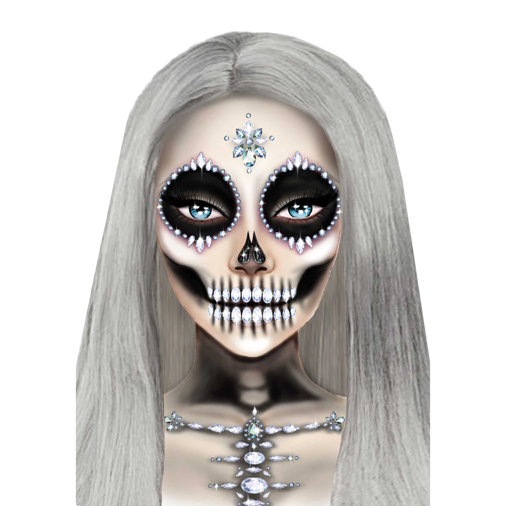 These deluxe face jewels are great for your skeleton fancy dress costume, the simple yet easy to use jewels are so effect. Ideal for Halloween events the jewels allow you to change your appearance without caking your face in face paint.