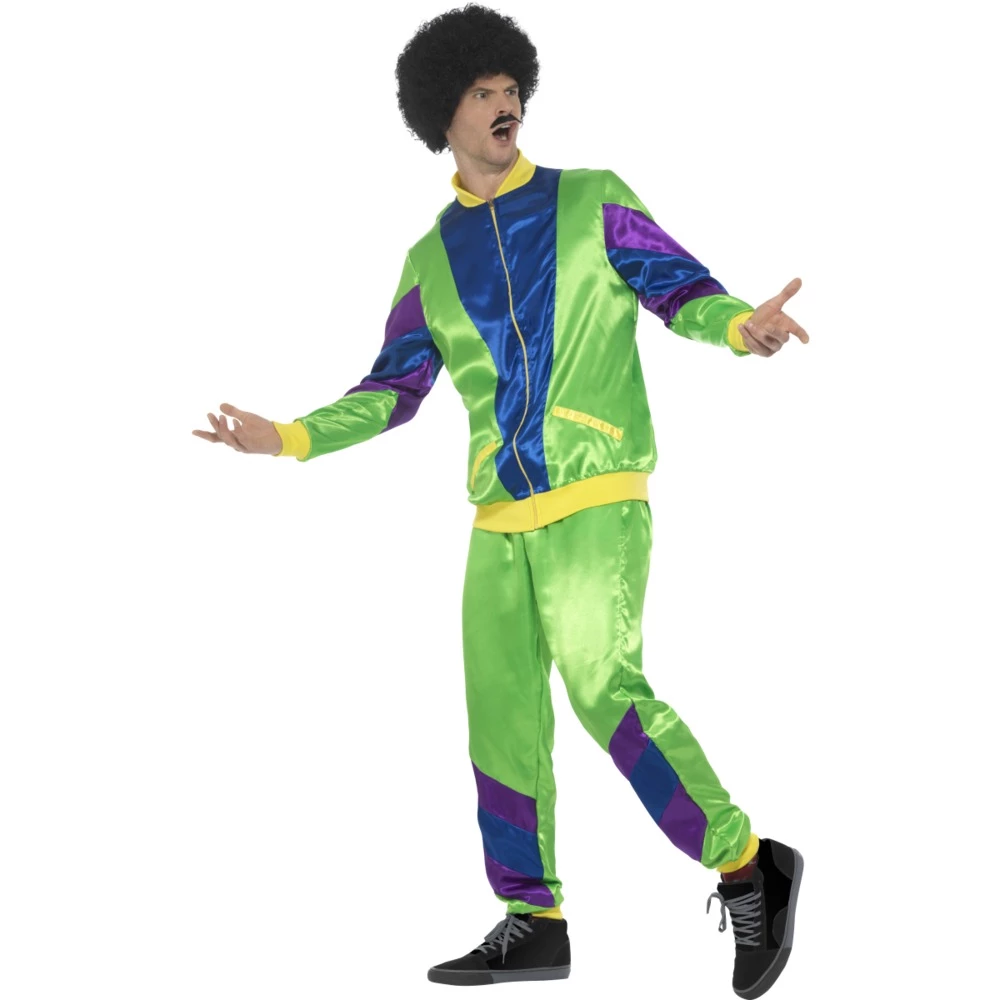 The Smiffys 80s style shell suit costume will really make you pop at the party, combine your look with a funky afro. The costume is bright green allowing you to stand out from the crowd during the 80s raves.