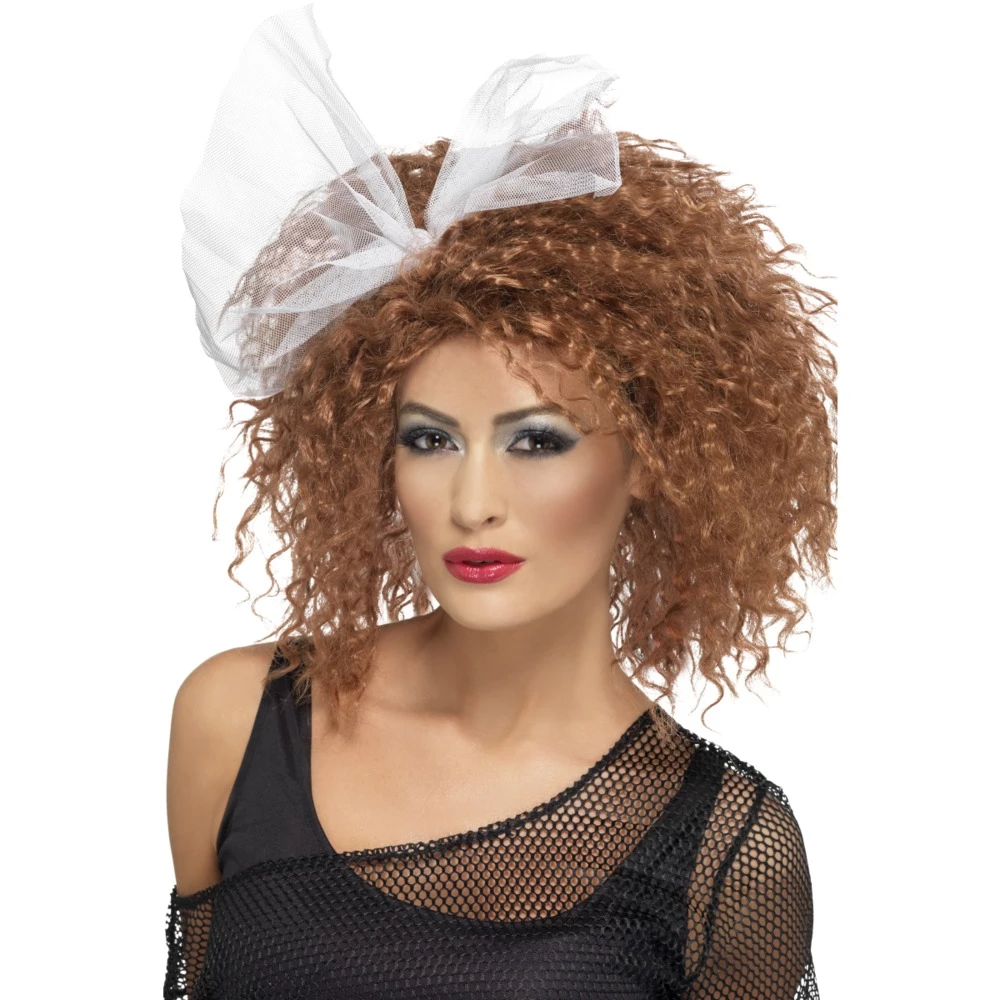 Go back to your crazy 80s days with the 80s Wild Child Wig. It’s curly, brown with an attached bow and perfect for a throwback party.