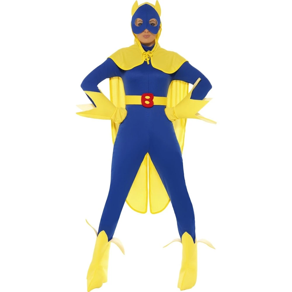 Ever alert for the call to action! Always wanted to be a superhero? Well now you can be with the ladies Bananaman Female Costume! You’ll look instantly recognisable in this officially licensed costume. The iconic character is perfect fancy dress for a throwback party. Included is a cat suit, mask, cape, gloves and bootcovers. Don’t forget your bananas for extra strength!