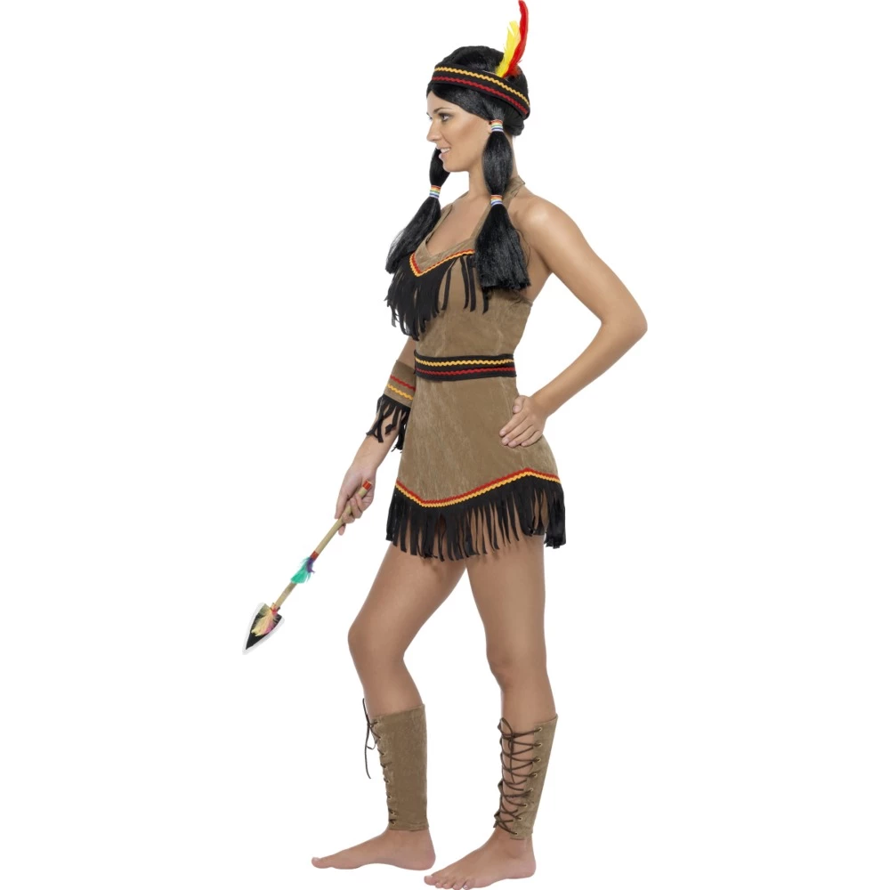 This Native American inspired fancy dress costume is ideal for all fancy dress events, the pretty suede dress is complemented by thrilling black tassels.