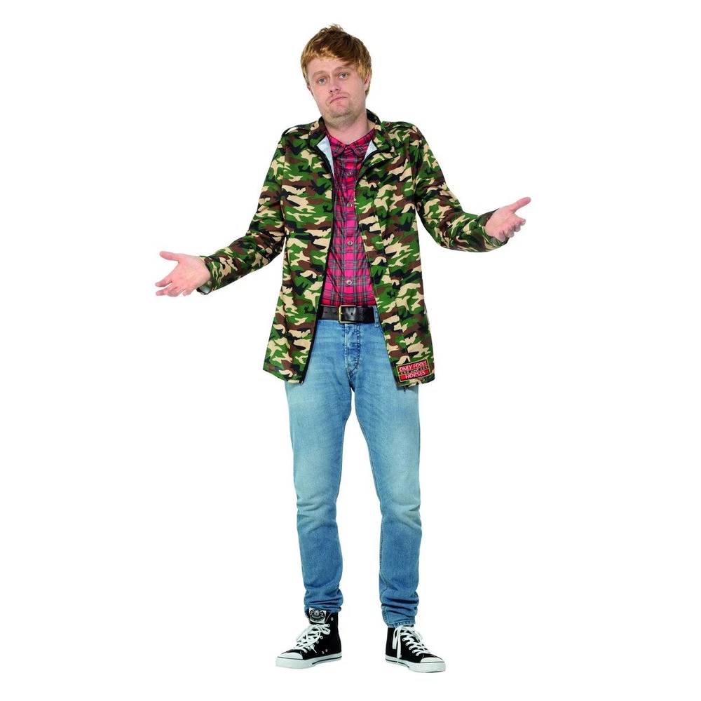 Turn into your favourite tv character with this licensed Only Fools and Horses Rodney costume. With Rodney wearing his typical camouflage jacket and tartan styled shirt you are bound to be spotted in the crowd.