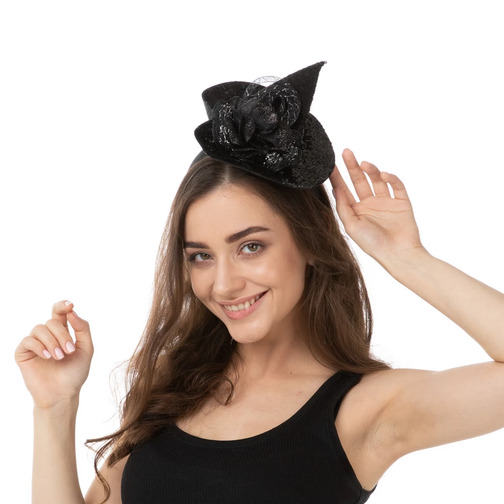 This black witches hat really complements any Halloween costume, attached to a headband to make you feel glamorous. The hat will sure add a special touch to your costume.