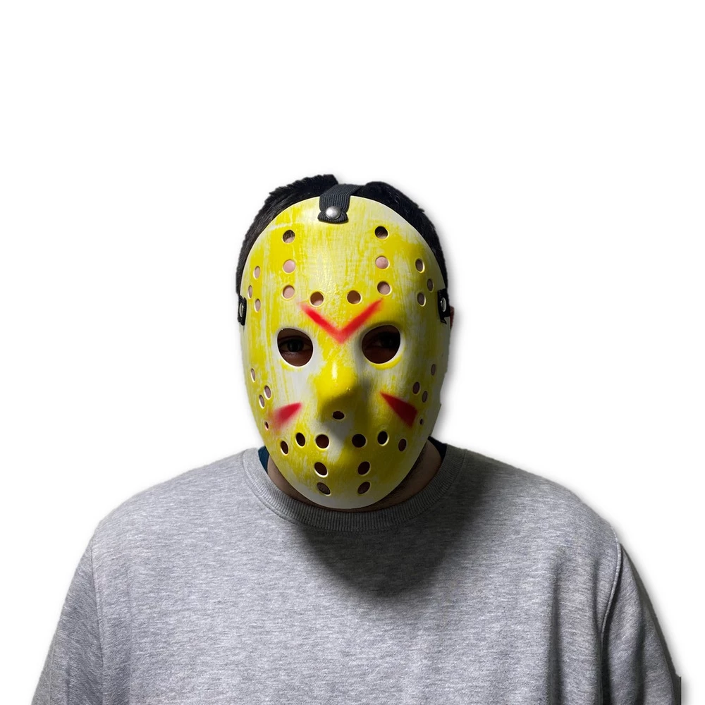 Give everyone a shock with this Yellow Hockey mask! Complete with signature red markings and a T-shaped Elastic Strap this mask is perfect for any adult looking for a quick yet effective costume!Â