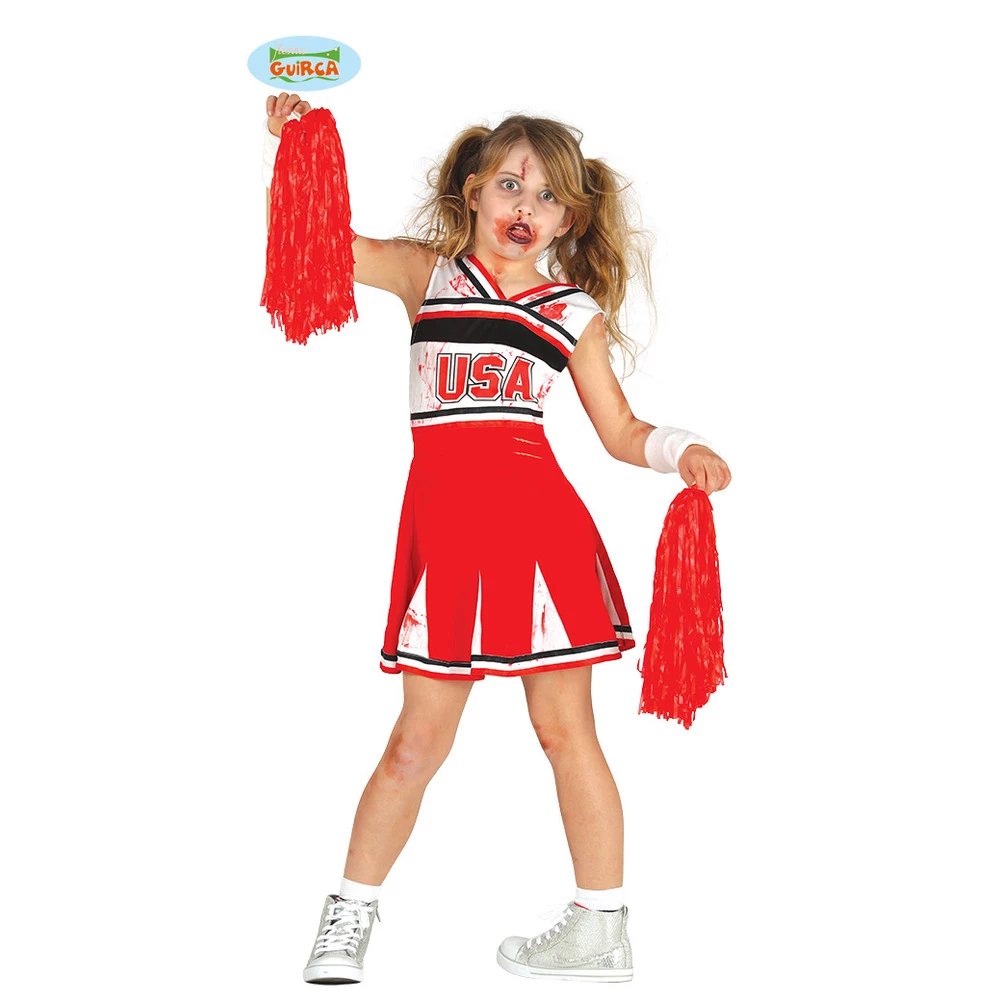 Its time to chew your way into the crowd with this super spooky zombie cheerleader costume. The simple yet extreme costume is perfect to create your little ones desired zombie costume. Put her hair into bunches and add the perfect special effects make up to create your desired look.